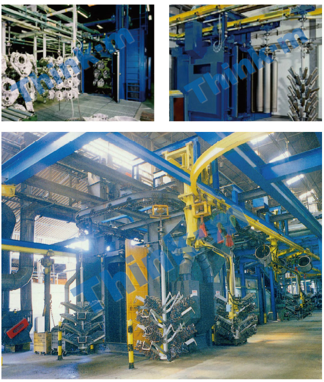 悬挂链通过式抛丸机是一种通过式自动丸清理设备。可用于铝合金、铸件、结构件、挖斗等各类零部件的表面清理、强化。产品经抛丸处理,不但可以除去工件表面的锈蚀、焊渣,还可以减弱焊接件的焊接应力,提高工件的抗疲劳强度,增加工件喷漆时的漆膜附着力,并最终达到提高整个表面及内在质量的目的。本设备实现自动化生产,采用高效抛丸器、芯筒脉冲除尘、PLC程序控制,是现代企业理想的机器人。铝合金产品可选配水幕除尘器;铸造件可选配二级磁性分离器。